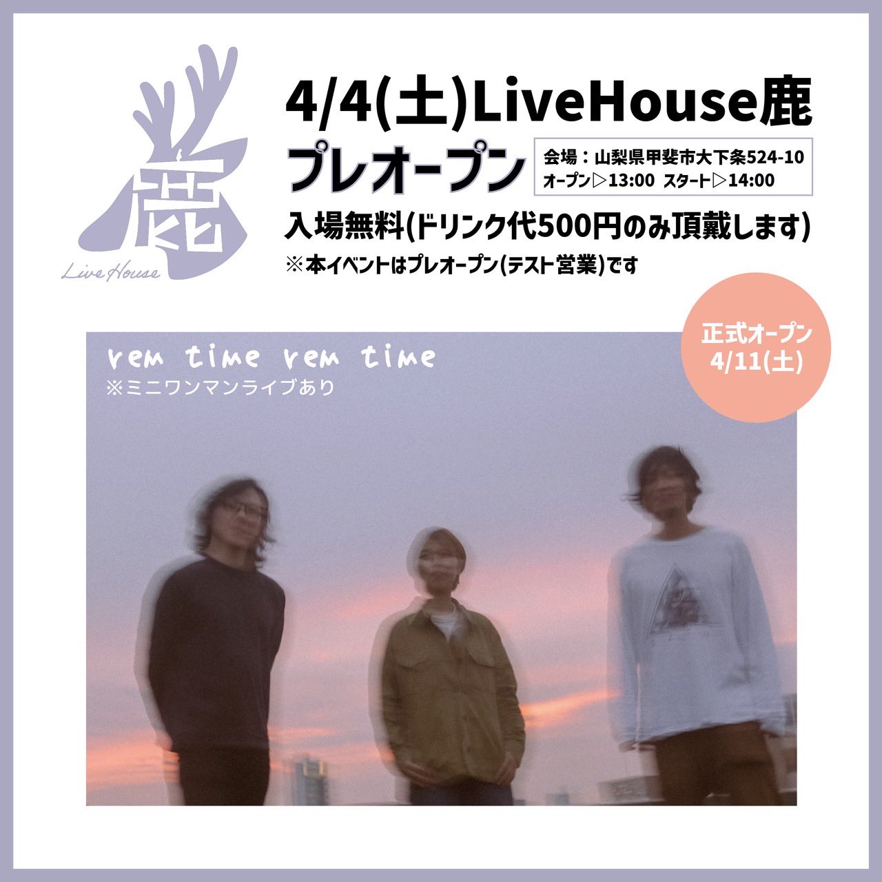 【出演】 sleepy ab. rem time rem time 【開場/開演】 17:00 / 17:30 20:00終演予定 【チケット料金】 Adv ¥3500 + 1Drink 【チケット購入/予約】 チケット […] |
